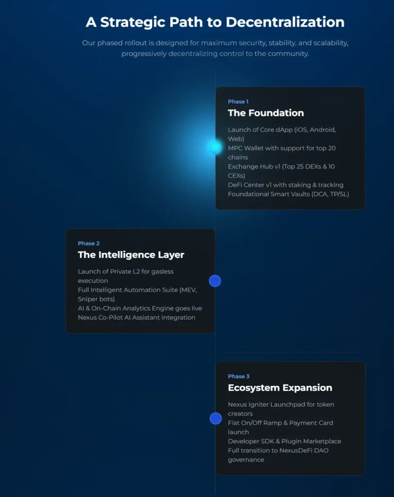 - Nexus DeFi uses modular architecture, meaning new features can be added over time without disrupting existing ones.