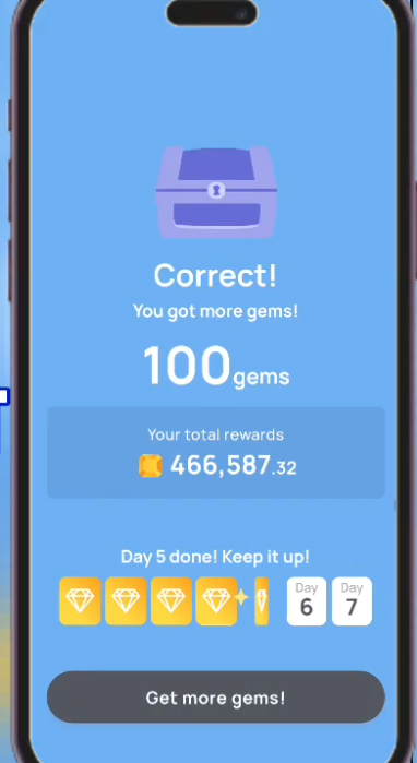 This is the correct answer and will give you 100 gems.